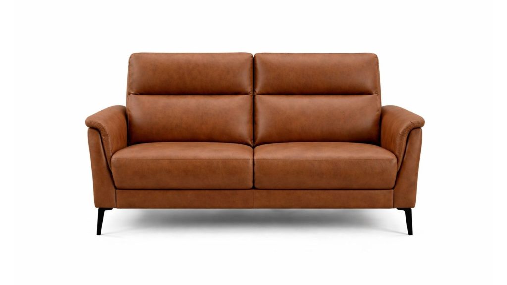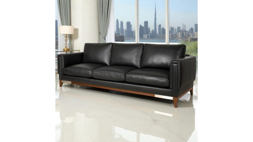 Fully upholstered sofa clad 100 % in genuine Italian leather. A luxurious leather with a shaded, natural two-tone effect on the surface, and a semi-aniline performance level.