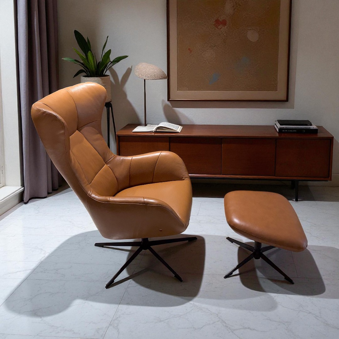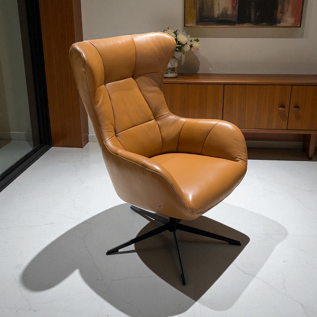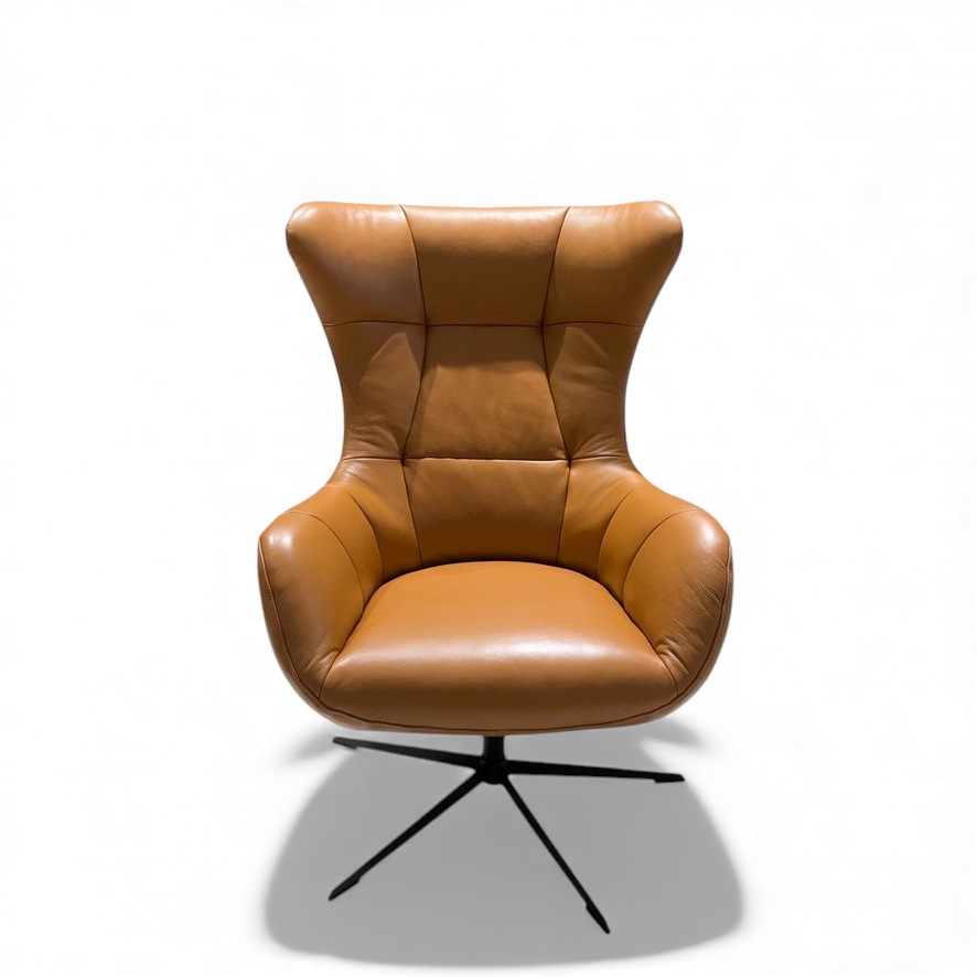 Our sculpted modern wingback inspired by mid-century Scandinavian design. Soft leather, organic curves, and a slim swivel base give it the presence of a statement piece without the weight. Heritage lines, contemporary precision — made to order in a wide range of colors in leather & fabric.